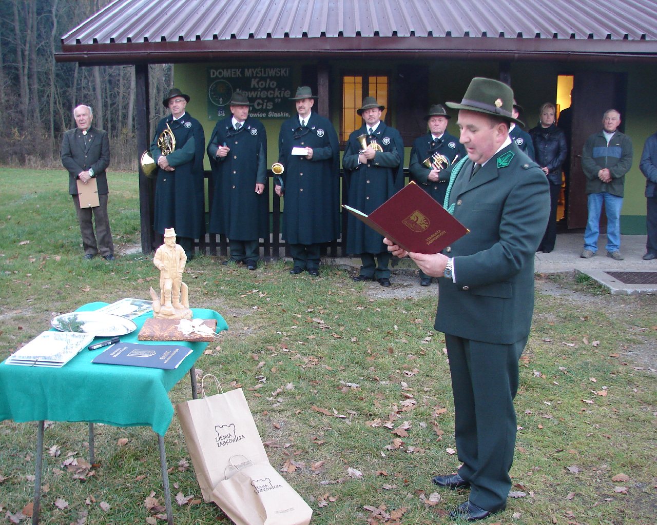 O godz. 15.00 przemówienie Piotra Mazura prezesa koła rozpoczęło uroczystości hubertowskie. Pokot uświetniony został blaskiem pochodni i dźwiękami rogów myśliwskich sygnalistów z zespołu Odgłosy Kniei.